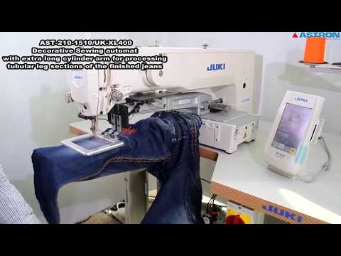Decorative sewing / ornamental stitch on tubular leg sections of the finished jeans